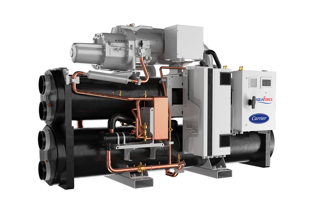 AQUAFORCE® 61XWHVZE: bombas de calor de alta temperatura con compresores de tornillo de velocidad variable diseñados por Carrier para redes de calefacción urbana y aplicaciones industriales