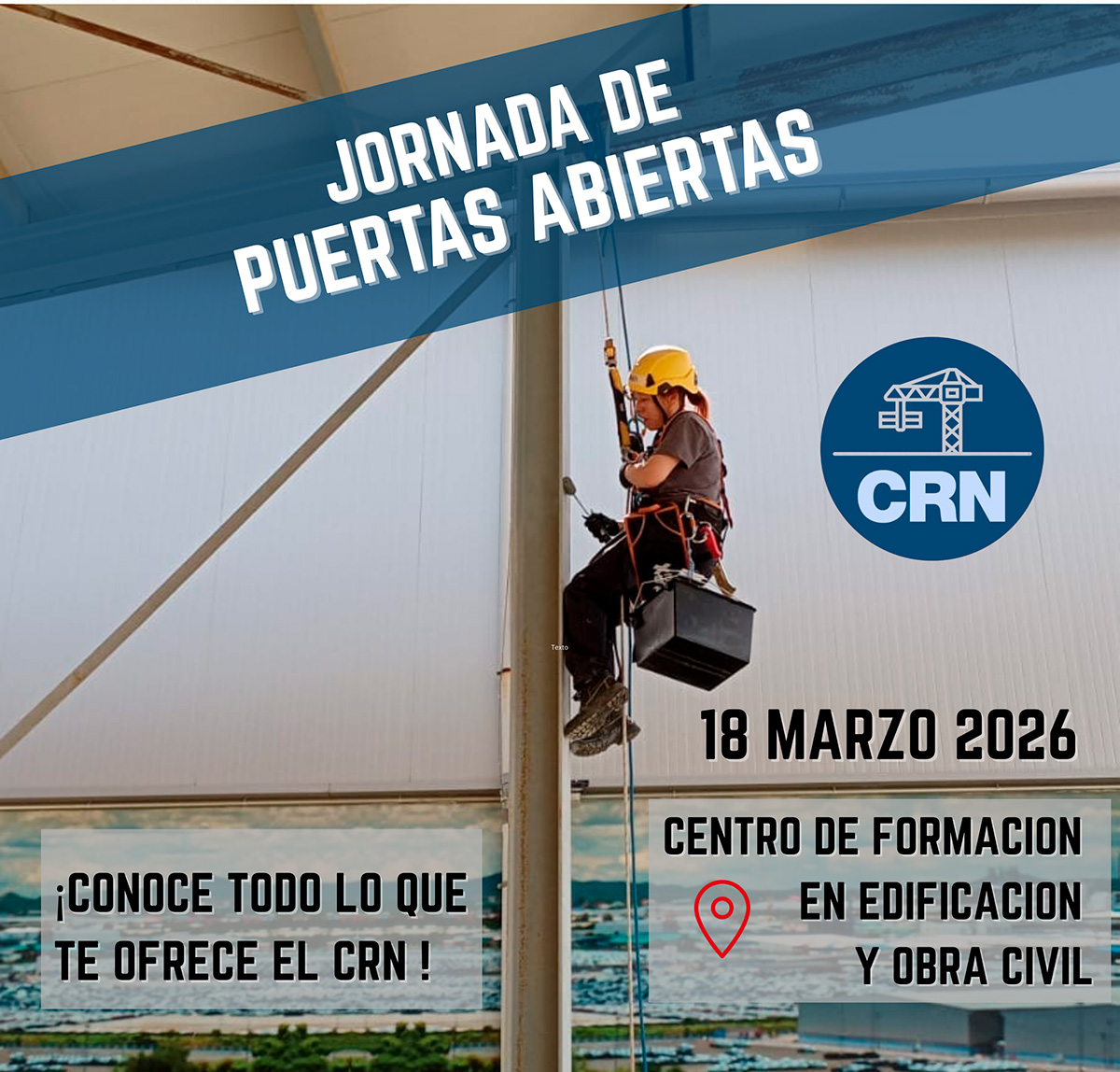 El Centro de Referencia Nacional de Edificación y Obra Civil (CRN) celebra el próximo 18 de marzo de 2026 su Jornada de Puertas Abiertas. Pensamos que puede ser una gran oportunidad para que nos conozcáis.