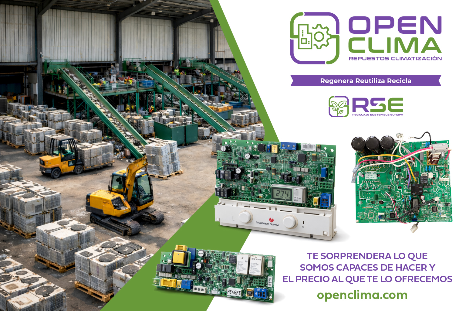 RECICLAJE SOSTENIBLE EUROPA es la empresa líder en España de producción y comercialización de repuestos y componentes reacondicionados para aparatos de climatización (calderas, aire acondicionado, aerotermia).